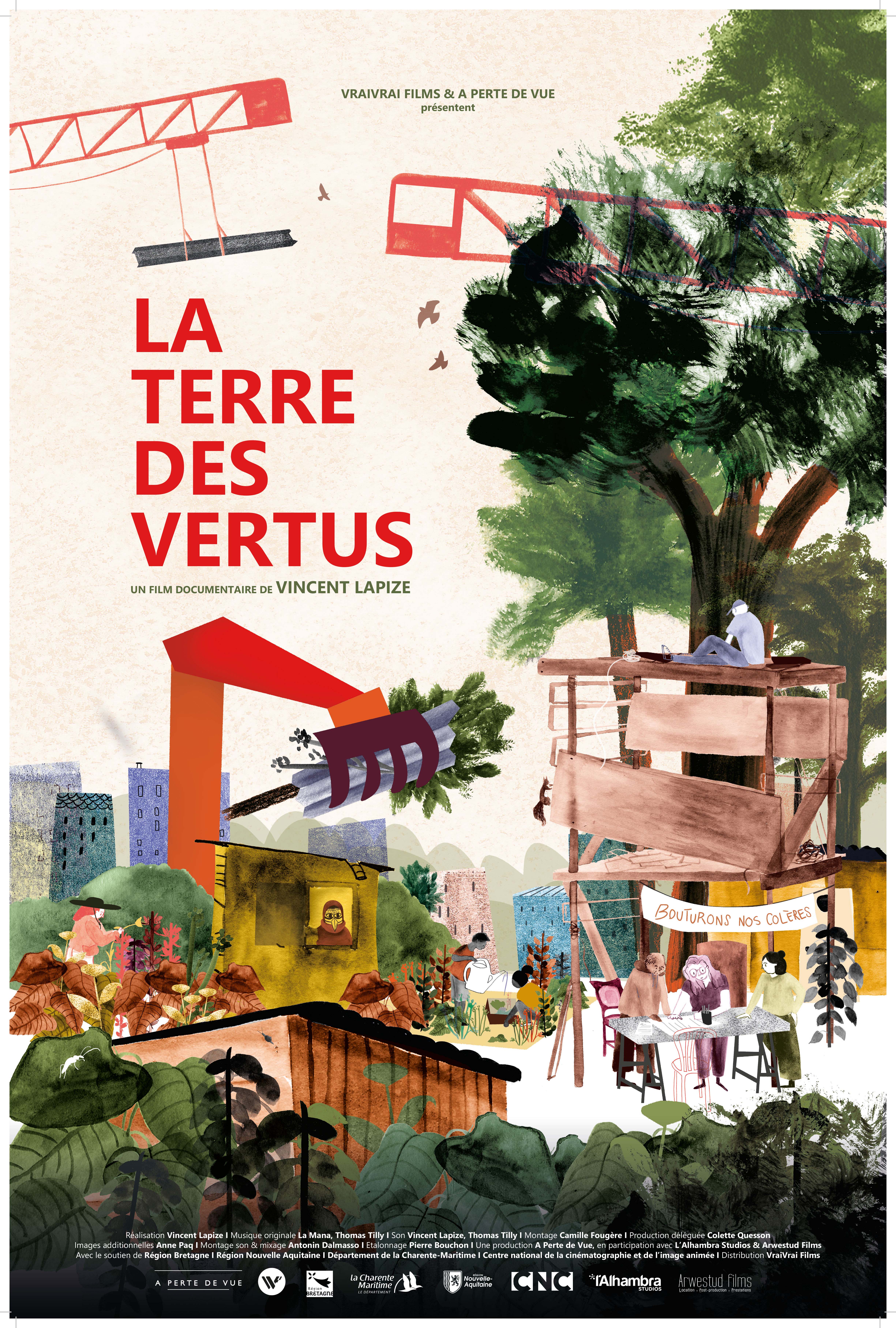 J’ai illustré et élaboré la mise en page de l'affiche du film documentaire La Terre des Vertus, réalisé par Vincent Lapize.