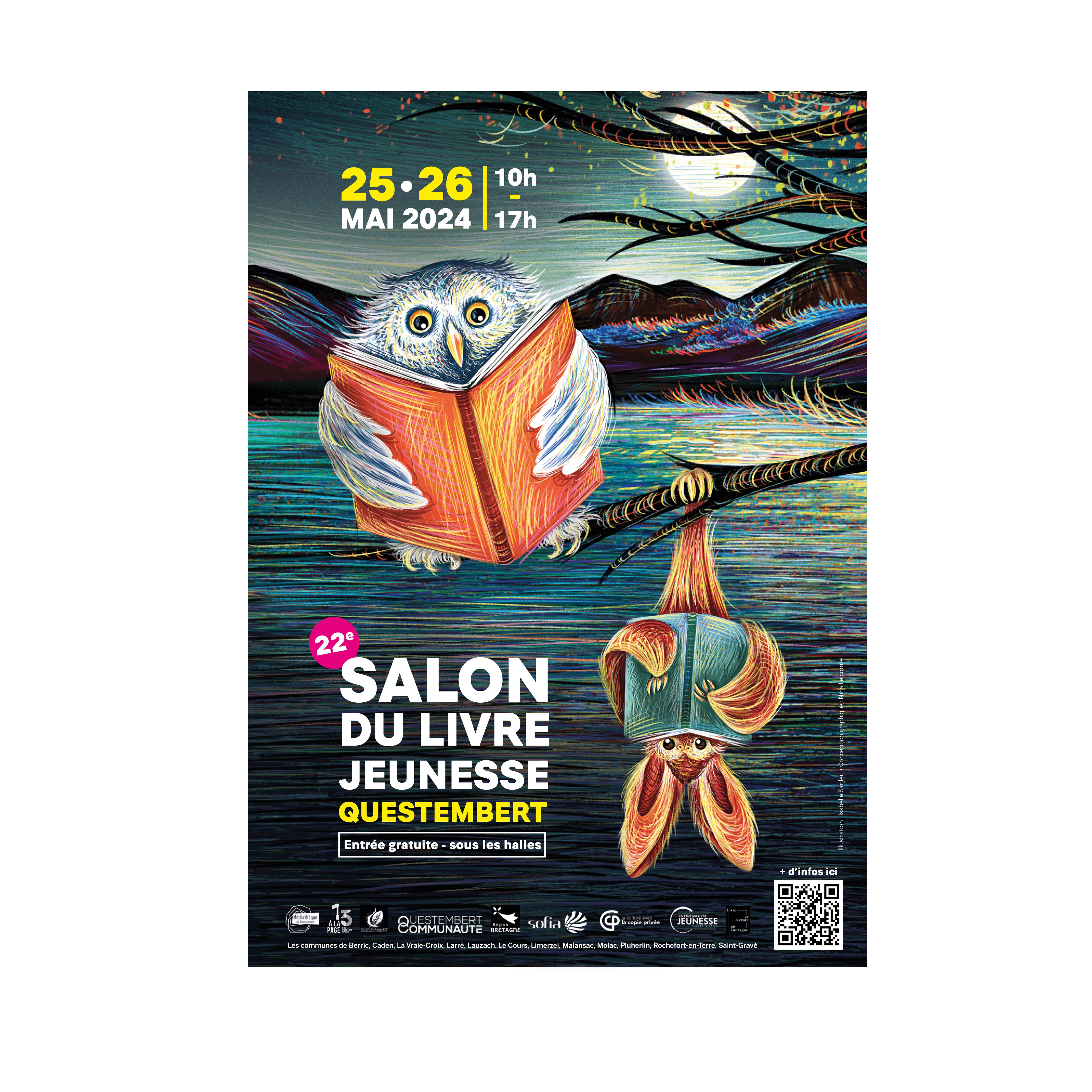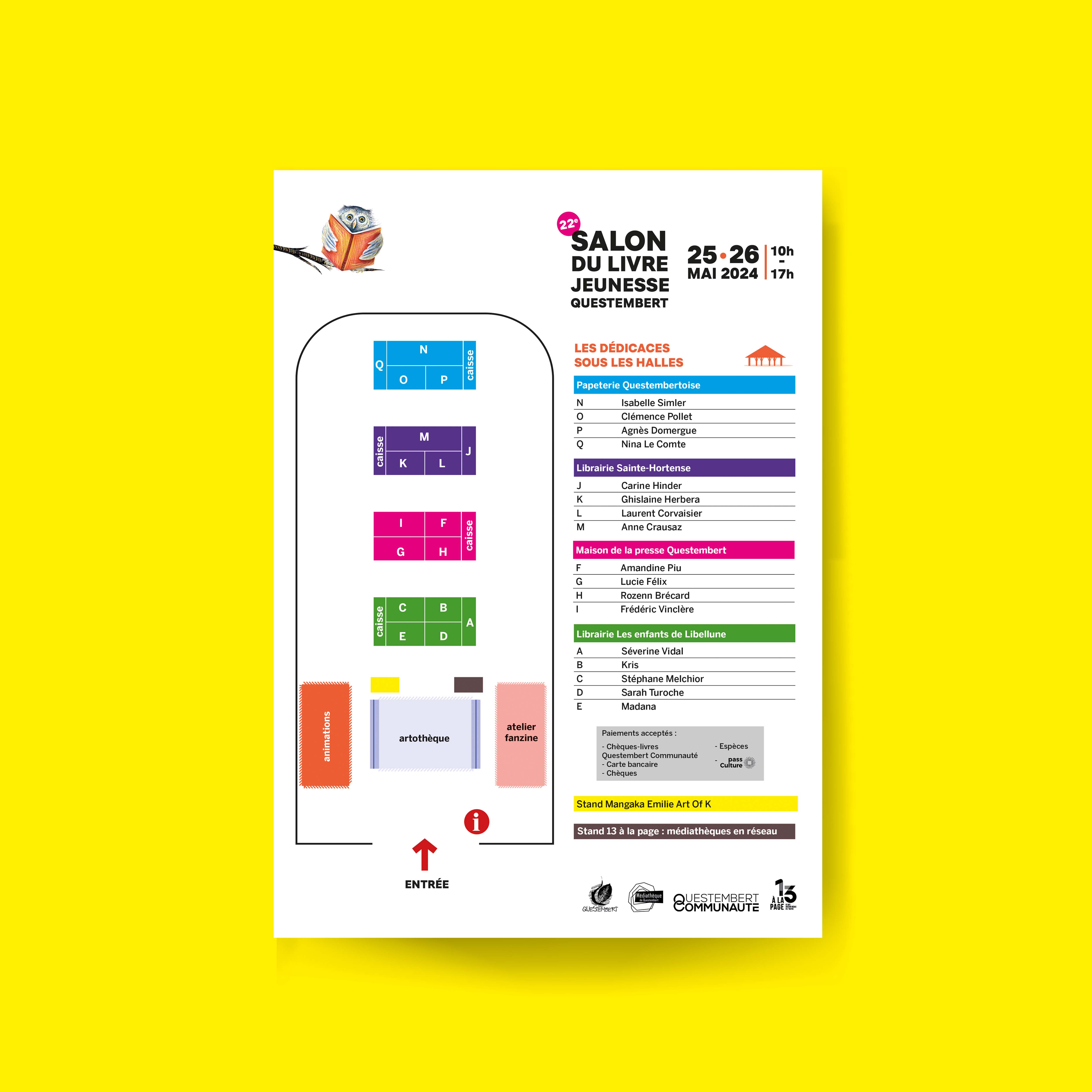 J’ai réalisé la conception graphique de différents supports de communication, imprimés et numériques, pour le Salon du livre jeunesse de Questembert.